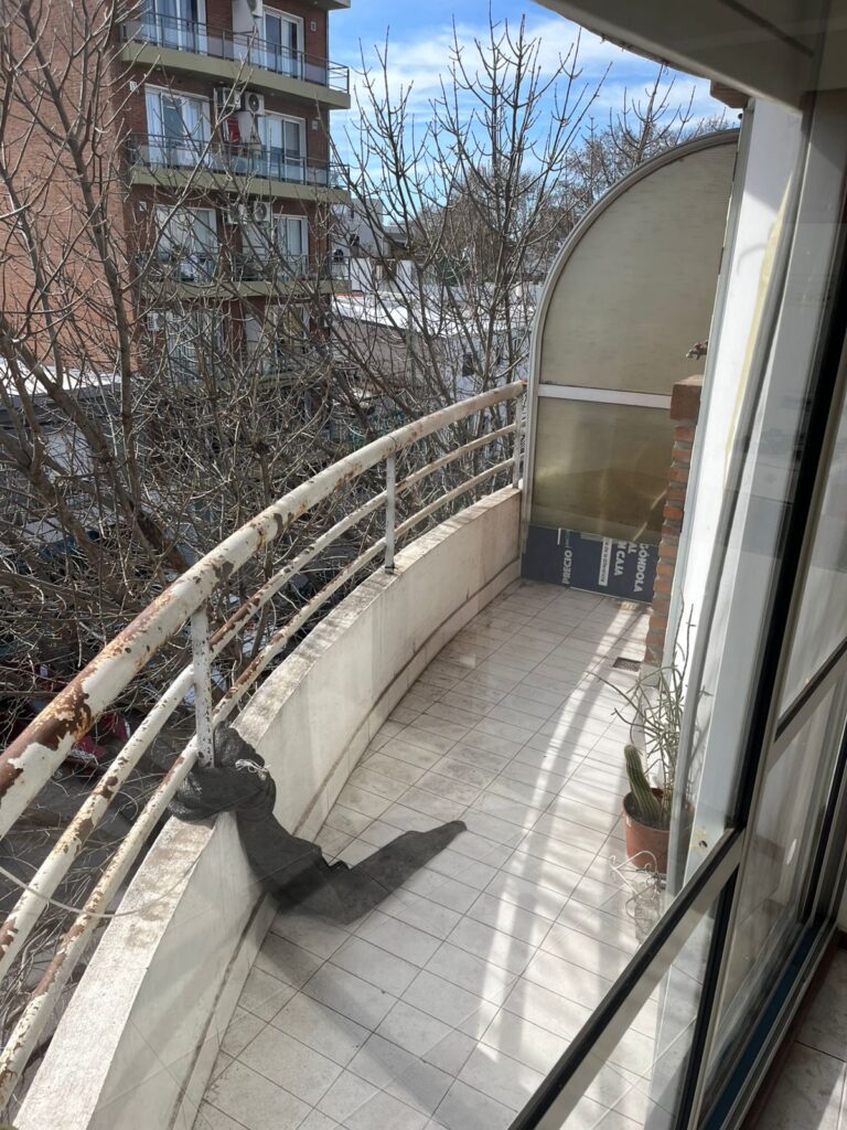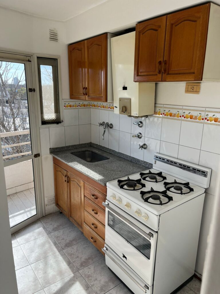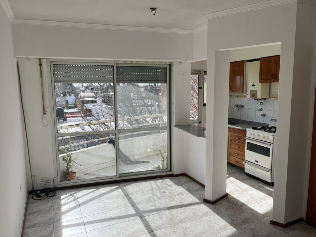 La propiedad cuenta con living con balcón al frente, cocina con pasaplatos, un dormitorio y baño. El balcón aporta ventilación natural y un espacio exterior que suma comodidad al uso diario.